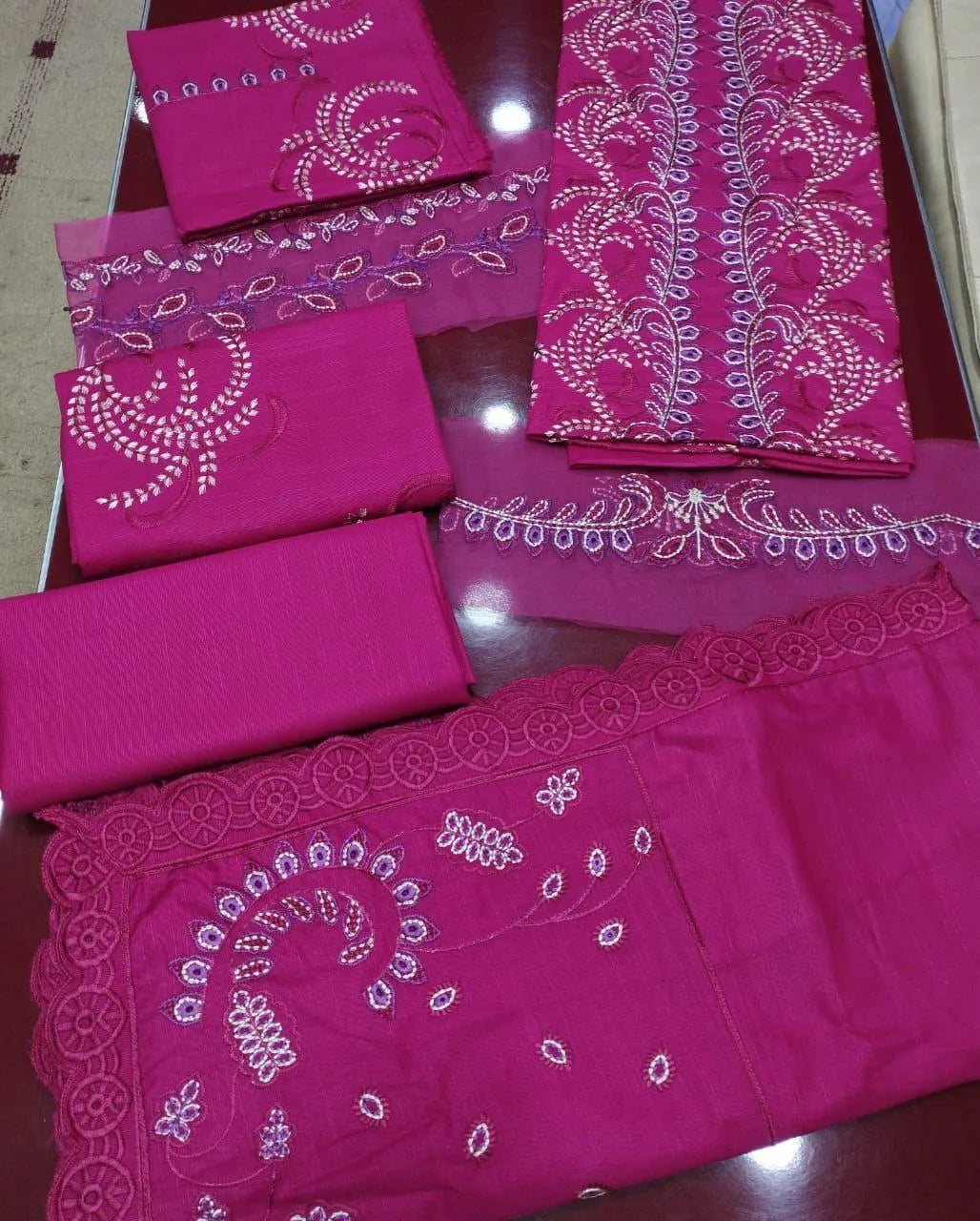 • Shirt Fabric: Khaddar• Pattern: Printed• Shirt Front Pattern: Digital Print• Neckline: Embroidered• Sleeves Pattern: Applique• Daman: Cut Work• Shirt Back Pattern: Ari Work• Trouser Fabric: Khaddar• Trouser Pattern: Embroidered• Dupatta Fabric: Khaddar• Dupatta Pattern: Embroidered• Number Of Pieces: 3 Pcs• Package Includes: 50 x Dupatta, 50 x Trouser, 50 x Shirt• Shirt Cutting: 2.25 Meter• Trouser Cutting: 2.5 Meter• Dupatta Cutting: 5 Meter• Color: Red• BRAND * = *MARYAM HUSSAIN LUXURY WINTER COLLECTION*• DESIGN = 815• FRONT = KHADDAR HEAVILY EMBROIDERY WITH RESHAM & THREAD. ALONG WITH ALL ACCESSORIES TOTAL ORIGINAL DESIGNS & COLORS FULL FLAIR & FULL LENGTH HEAVY EMBROIDERY AS PER ORIGINAL.• SLEEVES = Khaddar Heavy Embroidery Sleeves With Embroidery Organza Lace.• BACK = Khaddar Embroidery Back With embroidery Organza Lace.• DUPPATA= Khaddar Ready To Wear Heavily Shawl With Original Stitches & MultiColour Embroidery Design. With Heavily Embroidered Pallu Both Sides.• TROUSERS = Plain Dyed Khaddar Trouser• Just in 5150/-Pkr• Excluded delivery•