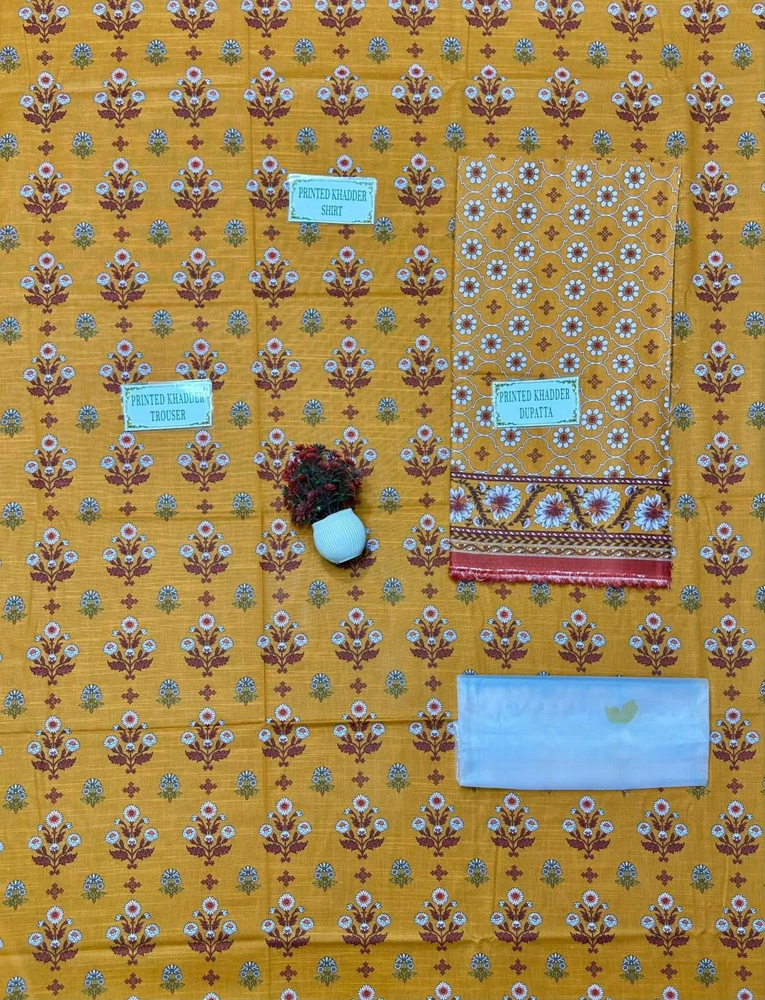 • Shirt Fabric: Khaddar• Pattern: Printed• Shirt Front Pattern: Printed• Sleeves Pattern: Printed• Shirt Back Pattern: Printed• Trouser Fabric: Khaddar• Trouser Pattern: Printed• Dupatta Fabric: Khaddar• Dupatta Pattern: Printed• Number Of Pieces: 3 Pcs• Package Includes: 1 x Shirt, 1 x Trouser, 1 x Dupatta• Shirt Cutting: 3.0 Meter• Trouser Cutting: 2.5 Meter• Dupatta Cutting: 2.5 Meter• Color: Orange